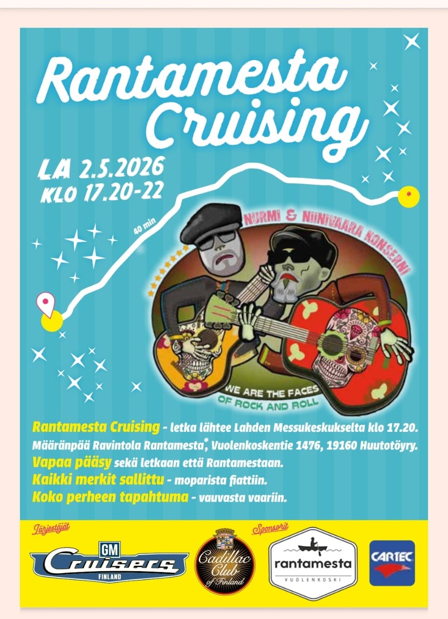 Rantamesta Cruising Lauantaina 2.5.2026 klo 17:20 – 22:00 Lahden Messukeskus